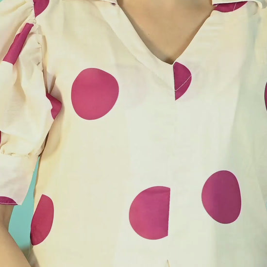 Elevate your style with our Off-White & Maroon Polka Dot Set. This chic ensemble features an off-white base adorned with sporty maroon polka dots, creating a stylish and eye-catching contrast. The set includes a matching top and bottom, which are designed to be perfect and stylish. Made from high quality fabric, it offers both comfort and sophistication, perfect for casual travel and informal gatherings. Available in a variety of sizes, this set effortlessly blends classic patterns with contemporary elegance.