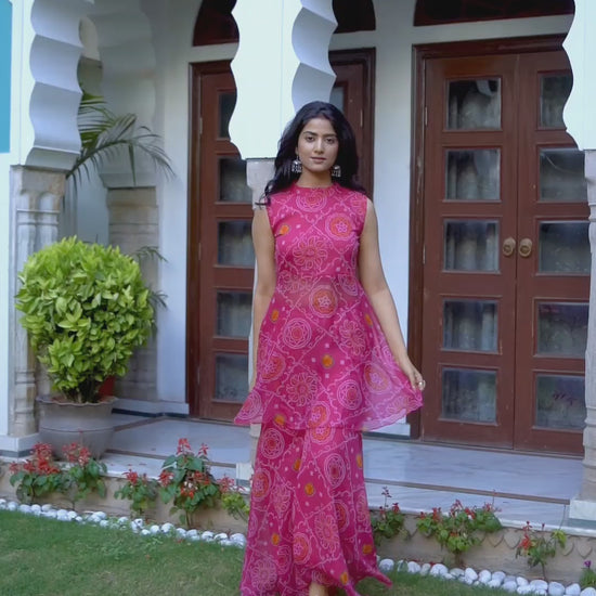 Pink Bandhani Paplum Sharara Set